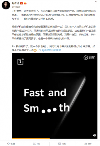 他表示,“一加新品将引领行业进入‘流畅’体验新纪元。这也是我用过的「最流畅的一加手机」,我们将重新定义轻快 & 流畅。”
