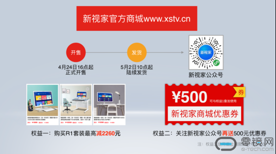 新视家官方宣布,4月24日16点,家教一体机R1在新视家官方商城和京东新视家旗舰店正式开售,5月2日10点起陆续发货。其中,用户在新视家官方商城可享受两大权益:权益一,购买R1套装最高减2260元;权益二,关注新视家公众号再送500元优惠券(权益二使用截止5月1日24点)。而通过京东新视家旗舰店购买的用户:前100名购买赠送无线蓝牙键鼠套装;前50名评论并晒单可获100元京东E卡;老带新购机成功可享300元返现;使用京东白条支付可享12期免息分期。