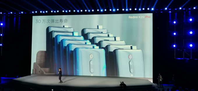 Redmi K20 Pro的2000万升降式相机前置镜头采用蓝宝石镜头盖板,耐磨耐划,同时为前置相机定制升降音效,升降时间0.8秒,并且与呼吸灯结合,升降寿命可达30万次。