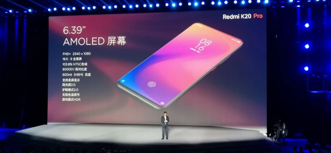 Redmi K20 Pro采用了极界全面屏,屏占比达到了91.9%,下边框只有3.8mm,完全达到了旗舰级的表现。6.39英寸AMOLED显示屏分辨率为2340×1080,同时搭载第七代屏幕指纹识别。在屏幕的功能方面还通过了低蓝光认证,并且搭载硬件级的DC调光,有别于其他手机的DC调光,Redmi K20 Pro将算法集成在了屏幕IC驱动中。不会出现软件DC调光的色彩断层问题。