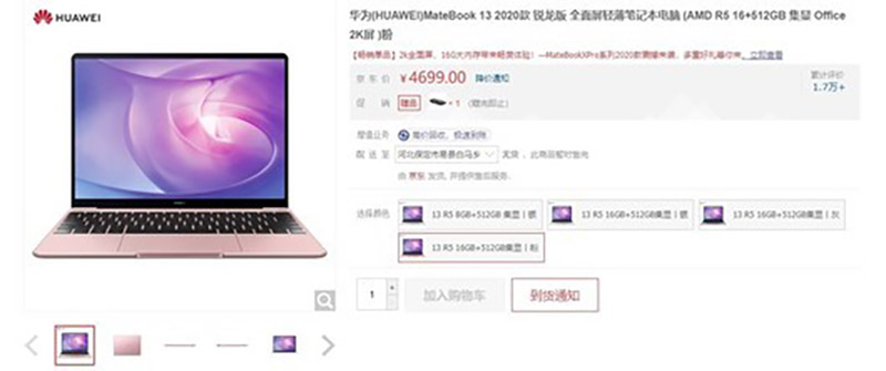 作为2019火了一整年的产品,HUAWEI MateBook 13 锐龙版可谓家喻户晓,其标志性的3:2屏幕比例、2K分辨率、全面屏设计,即使放在现在也依旧傲视群雄。HUAWEI MateBook 13 锐龙版本身设计和做工就非常出众,配上樱粉金简直就是无数少女心中最完美的产品,目前该机售价4699元。