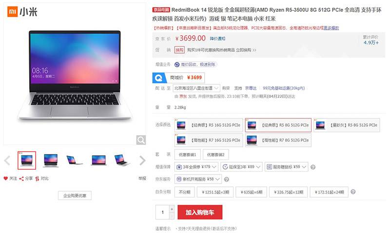 对于很多想选购一台可以办公的笔记本电脑,这款RedmiBook 14锐龙版性价比上还是十分不错的,搭载了AMD锐龙3000系列处理器,综合性能提升10%,同时搭载Radeon Vega 8显卡,一般的办公应用能够完美应对,目前该机京东售价3699元。