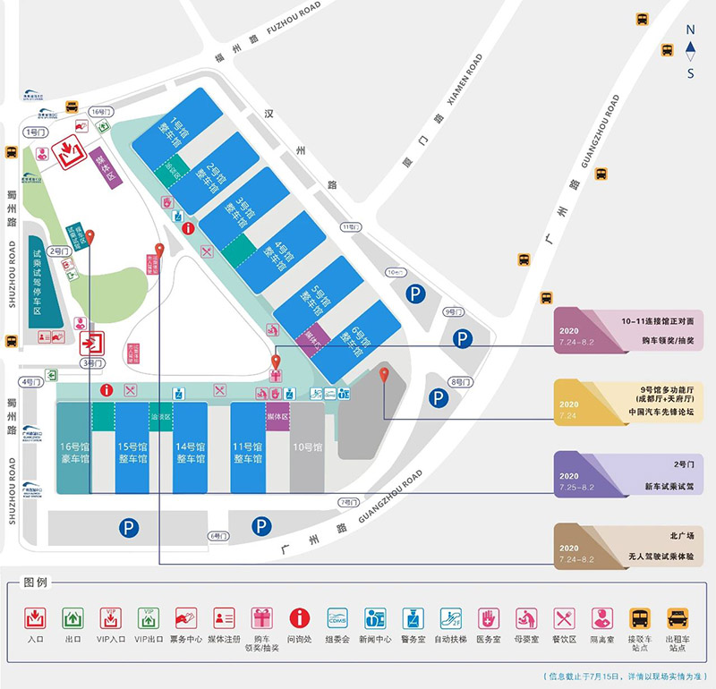 新闻会场实况 成都国际车展官方展位图正式发布 作者 Frank.C. - 2020年7月17日 成都国际车展将在7月24日-8月2日在西博城盛大举办!汇聚120多个国内外知名汽车品牌,参展车辆超1500余辆,展出规模达16万平方米! 先不说那么多,重点是这次“展位图”已经新鲜出炉啦! ●展位图● 展会总览 1号馆 2号馆 3号馆 4号馆 5号馆 6号馆 11号馆 14号馆 15号馆 16号馆 话说成都国际车展开展时间离我们越来越近了,小伙伴们准备好了吗?