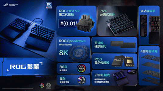 亮点:ROG HFX V2第二代磁轴,75%分离式设计