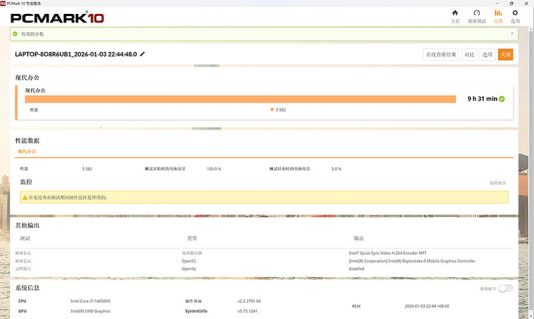 在确保性能的同时,暗影精灵11的续航表现也相当不错。凭借83Wh的大电池,其在节能模式、屏幕低亮度模式下,PCMark续航测试达到了9小时31分钟,足以应付一般移动使用或者应急情况了。