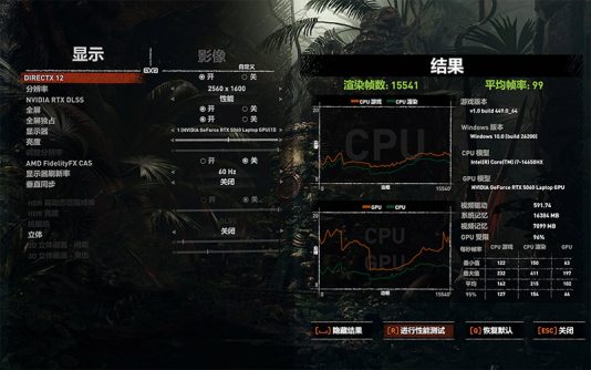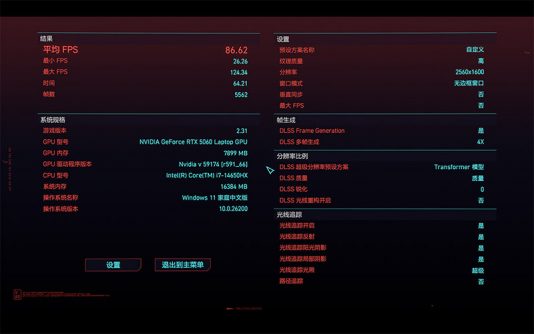 暗影精灵11的屏幕分辨率为2560×1600,运行游戏时的性能压力并不大。因此在测试之前我们就大概能够猜到游戏性能测试的结果——在拥有DLSS4的RTX 5060笔记本电脑GPU面前,主流 3A 游戏以高画质流畅运行完全不成问题。