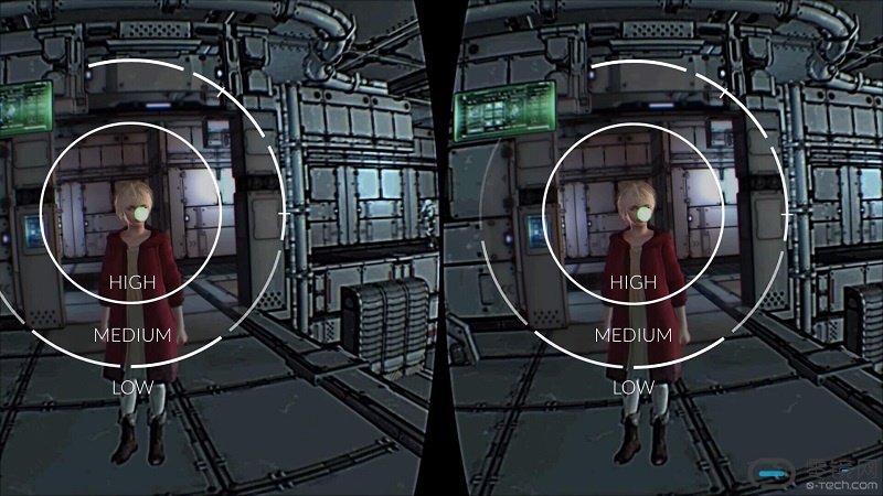模拟这种具有景深的感觉,业内有一种非光场解决方案:利用眼球追踪对显示画面进行焦点调整,让人眼产生景深的错觉。来自日本的FOVE就是在做这件事情。如上图,以注视中心为焦点,分成焦点不一样的三个区域。但光场眼镜Gglass中并没有采用追踪眼球的设备,“本来想加,后来觉得没必要”,赵清泉补充道。