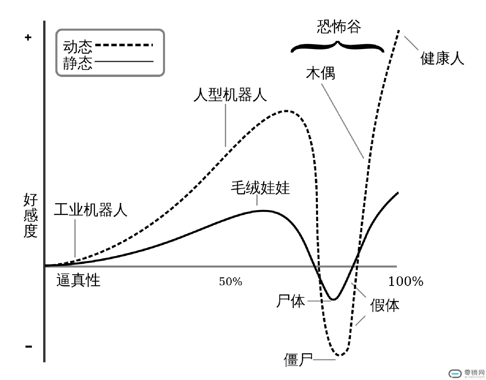 在上述“恐怖谷理论”中,指出的其实是恐怖谷的区间。在这个区间之前存在一个受欢迎度的峰值,在之后也存在一个峰值。如果依旧试图在逼真性上取得效果,那么虚拟人设的设置就应该实现更为逼真的效果。