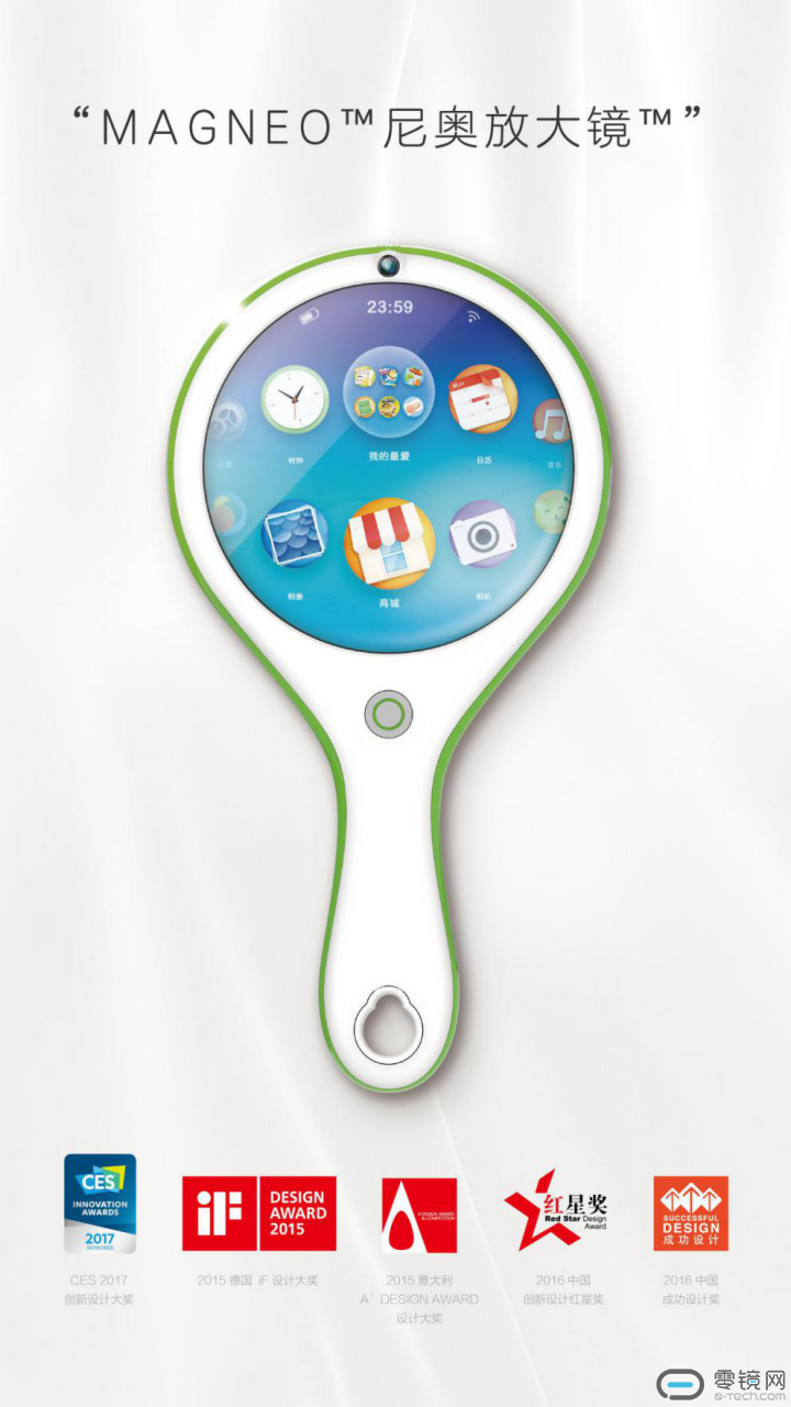 除了圆屏的革新,MAGNEO在其他方面均有极大突破。以代表未来科技的AR增强现实技术为核心,配置超强性能运算单元、适应图像识别要求的高清高速摄像头,符合人体工程学的手握方式,为孩子量身定制的QOS专属系统……这些以中国智造为代表的革命性设计让MAGNEO荣获了德国iF 2015设计大奖、意大利A’Design Award、美国CES 2017年度创新奖、2016中国设计红星奖和2016中国成功设计奖等多项顶级大奖。
