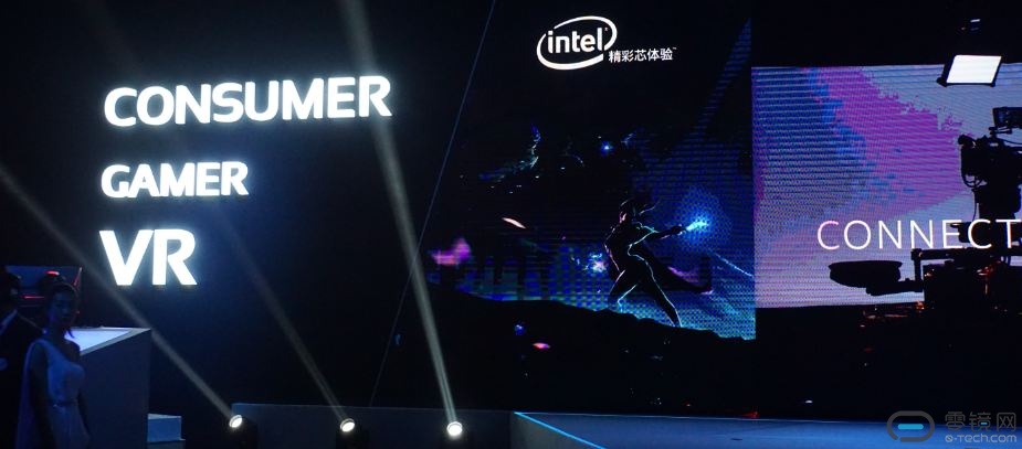 从会场特意搭建的VR体验区可以看出,这两年兴起的AR、VR和MR的热潮也是英特尔努力的方向。在英特尔看来,这是继电竞之后,又一个有巨大潜力推动PC性能升级的应用市场。目前他们暂时被定义在高端、发烧级骨灰玩家支撑的金字塔顶尖游戏市场,而未来则拥有更广阔的空间。