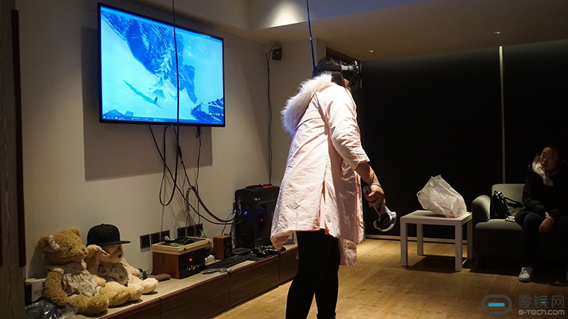 零镜网当场体验了Steam平台上的一款滑雪游戏和一款恐怖游戏。出乎小编意料的是,店员拿出了眼镜配件。在HTC Vive上安装配套的眼镜后,我第一次看清楚了虚拟现实的世界。也就是简简单单的两款游戏,Steam平台+Vive头显+配套眼镜的配置,足以令我沉浸其中。