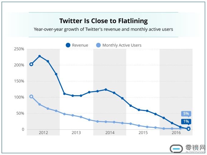 日前,Twitter发布2016年第四季财报,收益7.17亿美元,同比增长仅仅1%,低于华尔街预期的7.4亿美元。Twitter去年第四季共增加200万新用户,月均活跃用户量来到3.19亿,也低于华尔街期望的300万。增长缓慢的背后,蕴藏着缺乏创新和突破的危机。